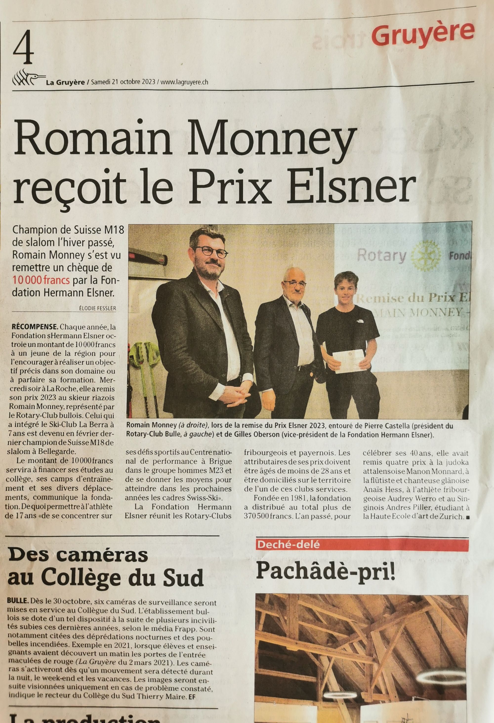 Rotary Club de Bulle. L’athlète de 17 ans, qui est devenu champion suisse